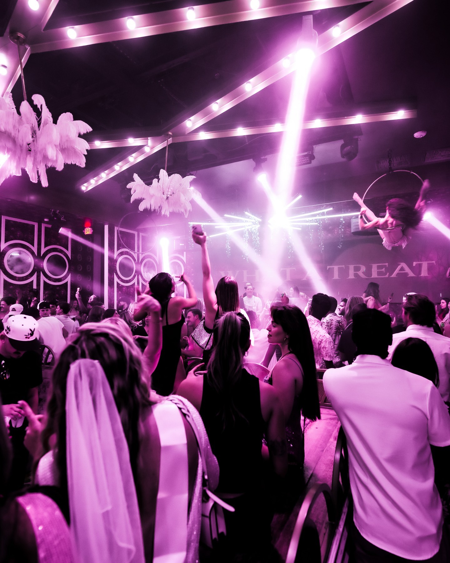 Cake Nightclub in Scottsdale delivers a vibrant and upscale nightlife experience. The space covers 3,000 square feet and holds up to 350 guests, making it ideal for both big nights out and private events. Inside, the club features a polished design with marble tables, plush seating, floral accents, and bold neon lighting. Elegant chandeliers and mirrored walls add a touch of luxury, creating a stylish yet energetic atmosphere. The club also includes a full-service bar, cutting-edge lighting, and a state-of-the-art DJ booth.